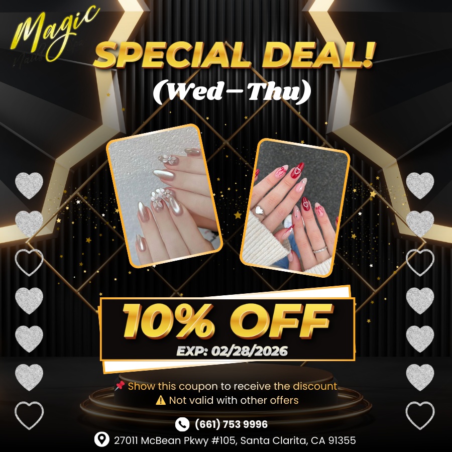 Magic Nails Spa is a top-notch nail salon and spa in Santa Clarita, California 91355. We ensure that you will be impressed right after entering the door by our nail salon’s luxurious and modern space.